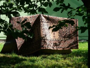 In einer Pump-Sprühflasche 5 Kappen LimOrange-Multifunktionsreiniger (Orangenreiniger) auf einen 1/2 Liter Wasser geben und die Mischung kurz durchschütteln (es entsteht dann eine milchig-weiße Flüssigkeit). Flecken in Teppichen oder Textilien mit dieser LimOrange-Mischung besprühen, kurz einwirken lassen und mit einem nassen LimTex Microfasertuch ausreiben.