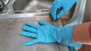 Schritt 4: das Backblech mit einem nassen LimTex Microfasertuch und / oder einem Schrubber saubermachen. Eingebrannte Verkrustungen lösen sich problemlos.