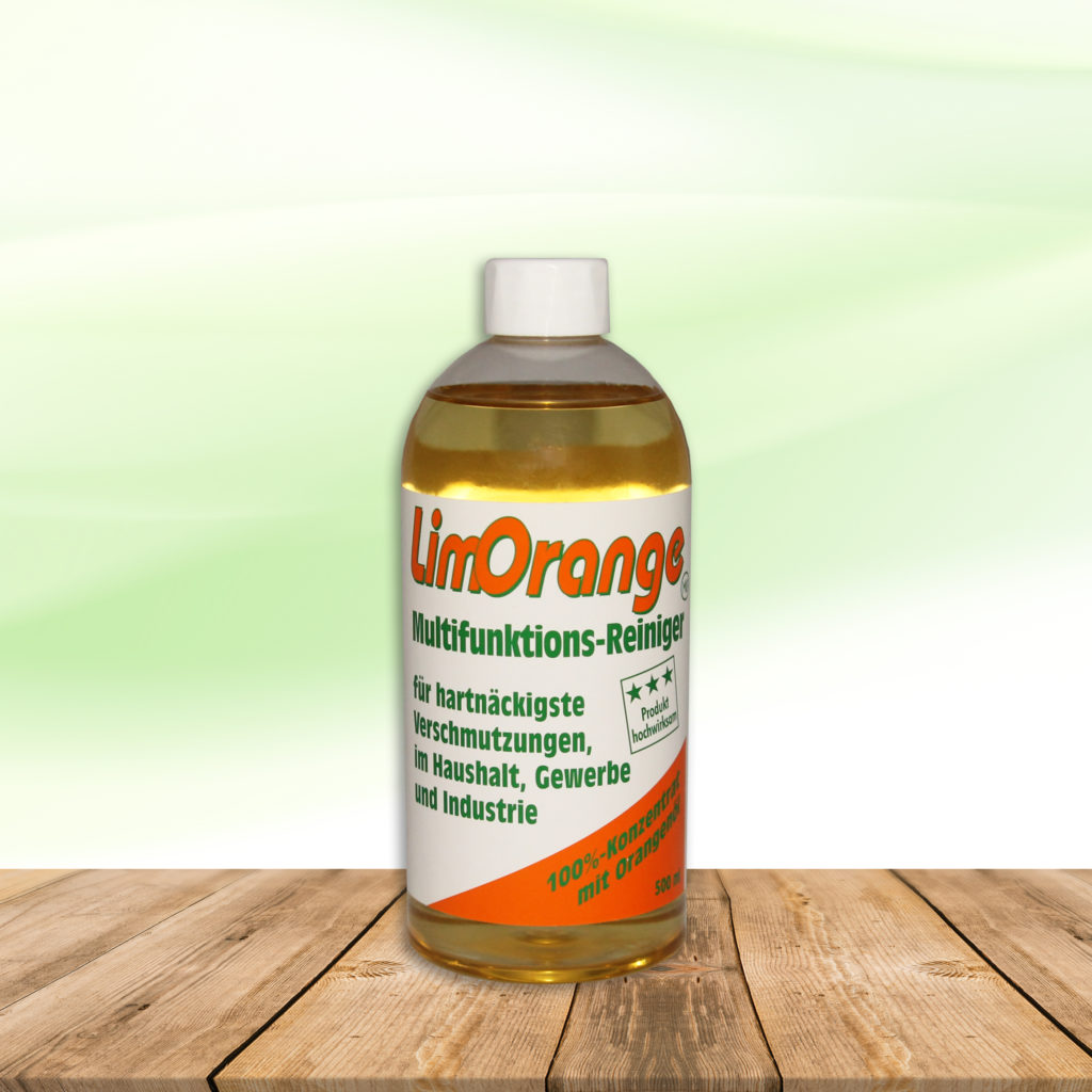 Somit können Sie aus unserer 500-ml-Flasche LimOrange-Füssigkonzentrat ca. 20 Eimer Haushaltsreiniger herstellen.