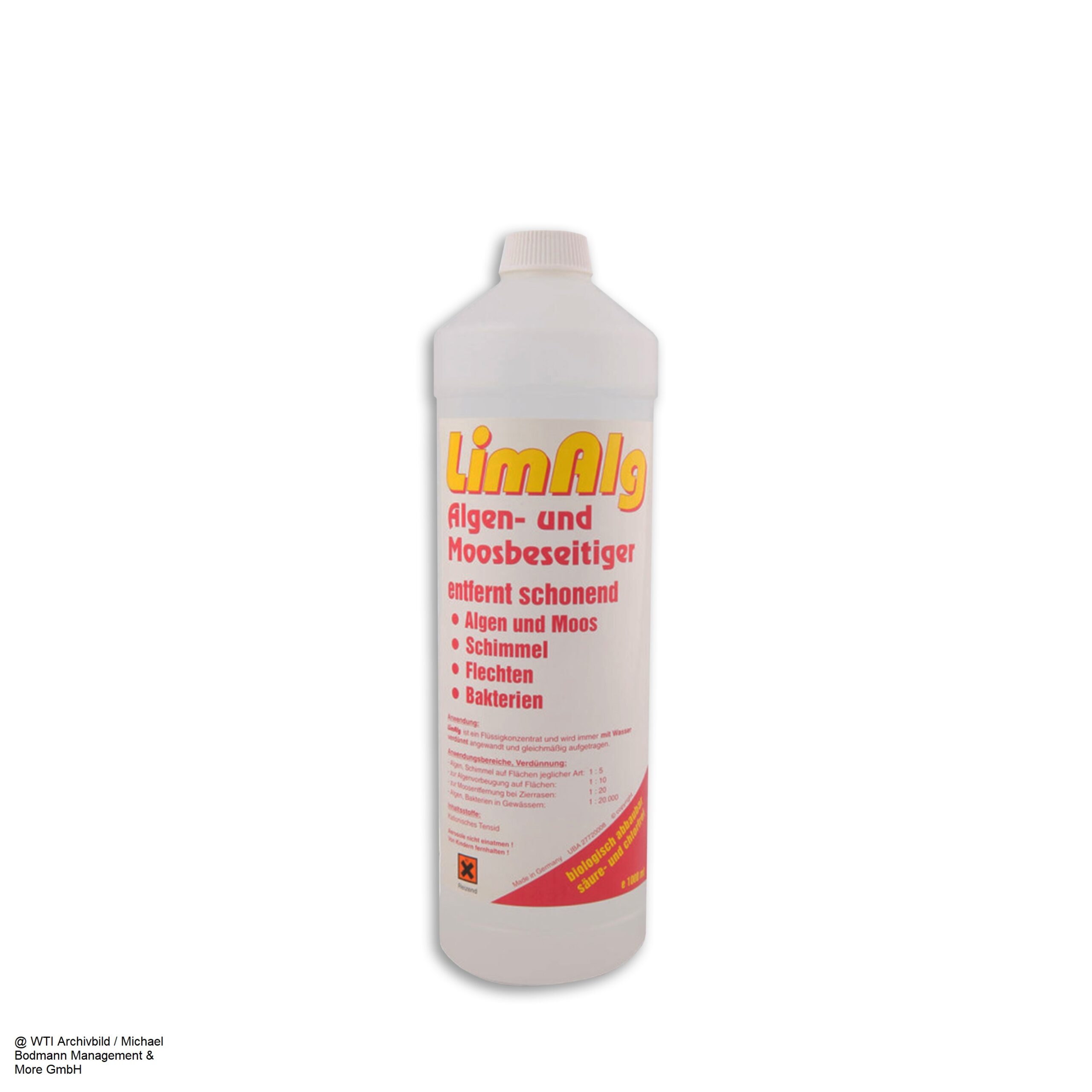 LimAlg ist erhältlich als Flüssig-Konzentrat (deshalb immer mit Wasser verdünnen) in der sparsamen 1000 ml-Flasche mit bewährten, umweltfreundlichen Wirkstoffen.